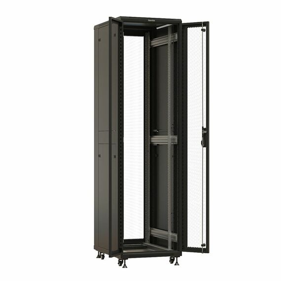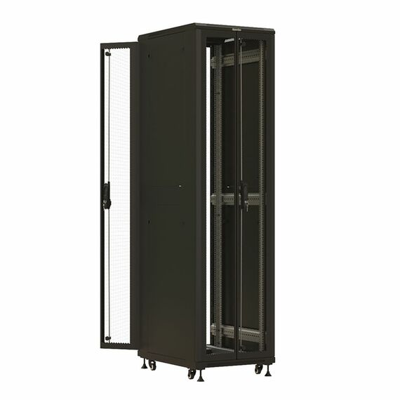 Шкаф напольный Hyperline TTBR-4762-DD-RAL9004 19", 47U, 2277x600х1200 мм (ВхШхГ), передняя и задняя распашные перфорированные двери (75%), ручка с замком, цвет черный (RAL 9004) (разобранный)