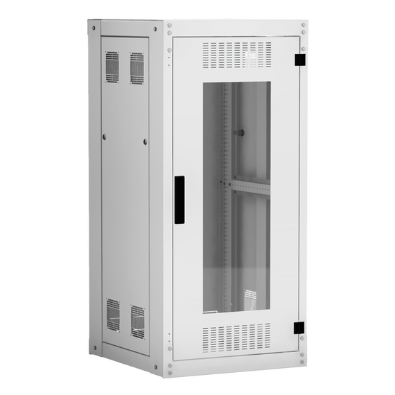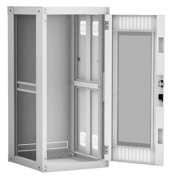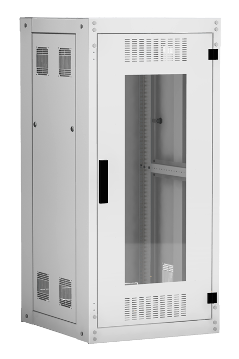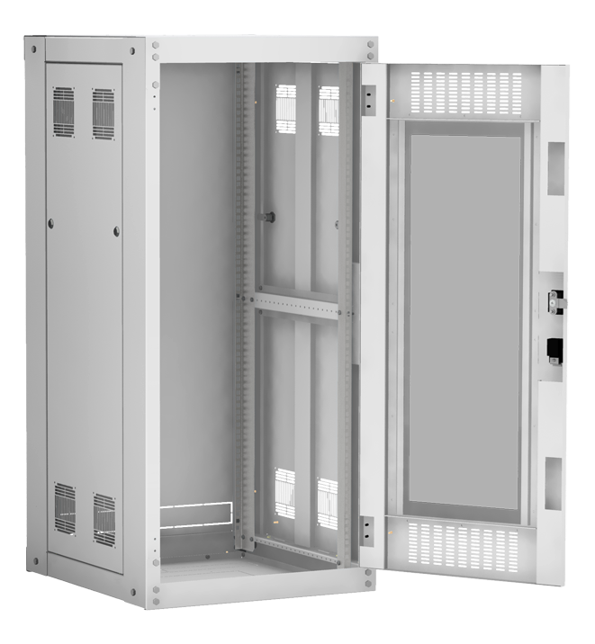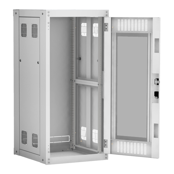 Наличие у шкафа двери с углом открытия 180 градусов и съемных боковых панелей и задней панели, предоставляет доступ для установки и обслуживания оборудования с четырех сторон.