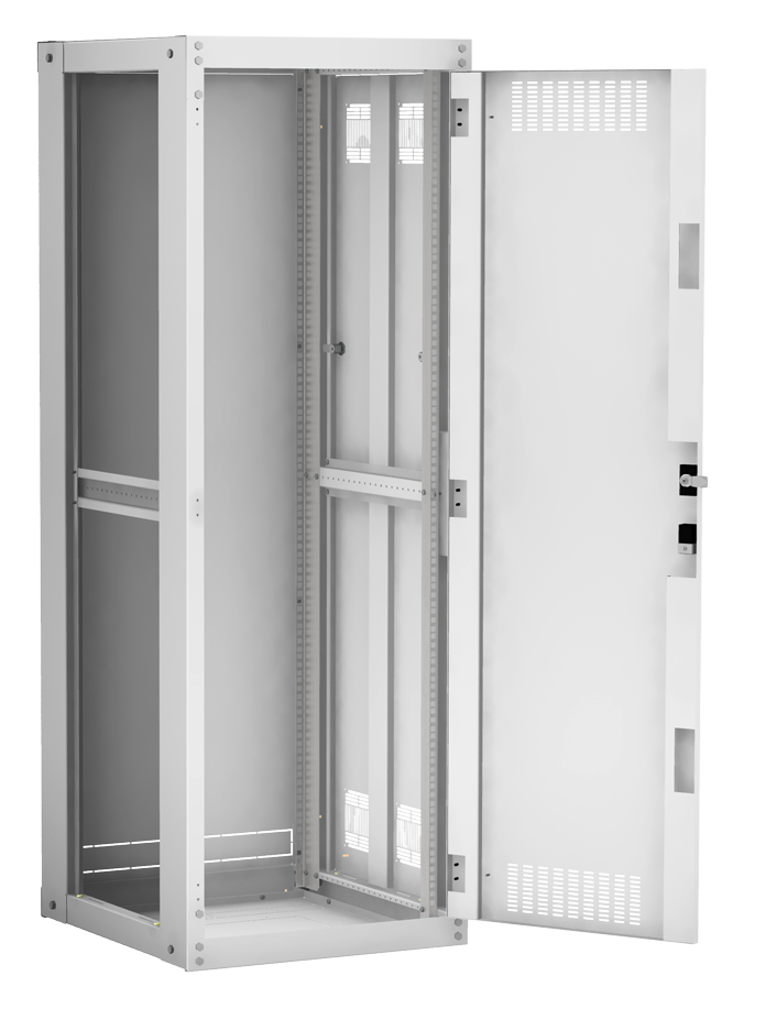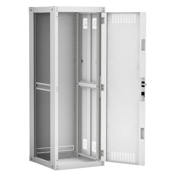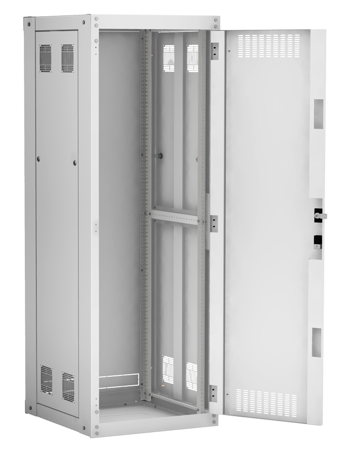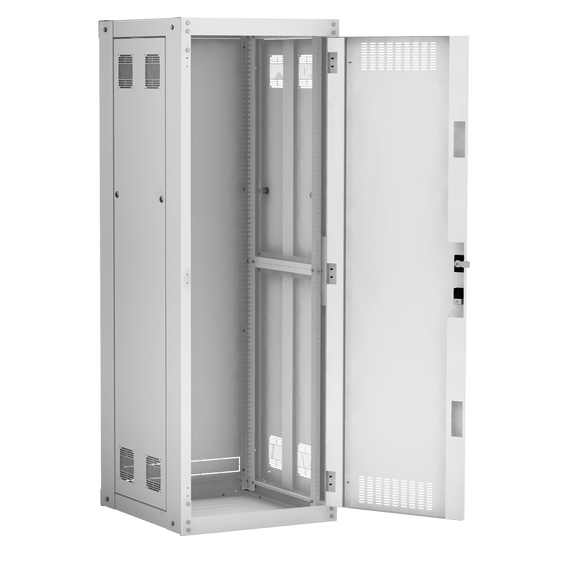 Наличие у шкафа двери с углом открытия 180 градусов и съемных боковых панелей и задней панели, предоставляет доступ для установки и обслуживания оборудования с четырех сторон.