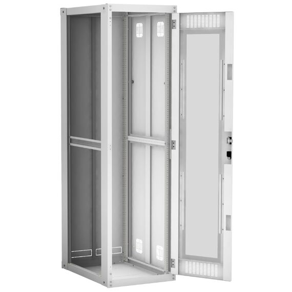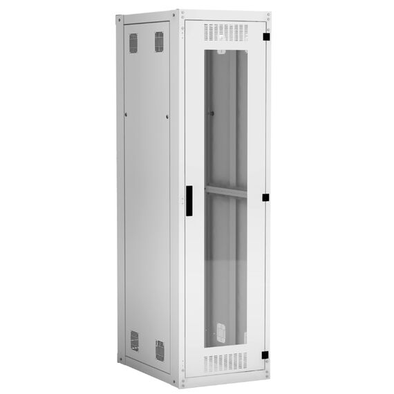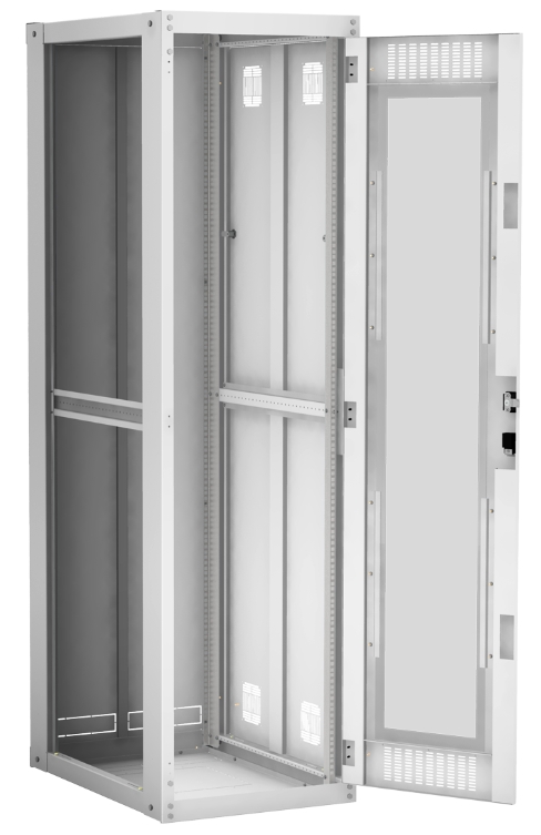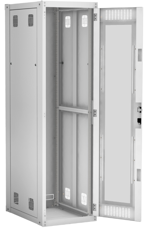 Наличие у шкафа двери с углом открытия 180 градусов и съемных боковых панелей и задней панели, предоставляет доступ для установки и обслуживания оборудования с четырех сторон.