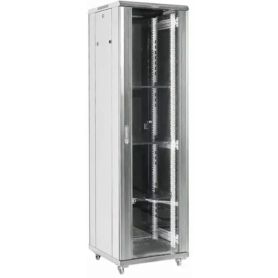 Шкаф серверный напольный Rexant 04-4268-211 42U 600x800мм пер.дв.стекл металл 2 бок.пан. направл.под винты 800кг серый 92кг 230град. 2054мм IP20 сталь