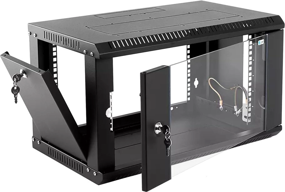 Шкаф коммутационный ЦМО ШРН-Э-6.350-9005 ШРН-Эконом настенный 6U 600x350мм пер.дв.стекл 85кг черный 300мм 11.43кг 180град. 342мм металл