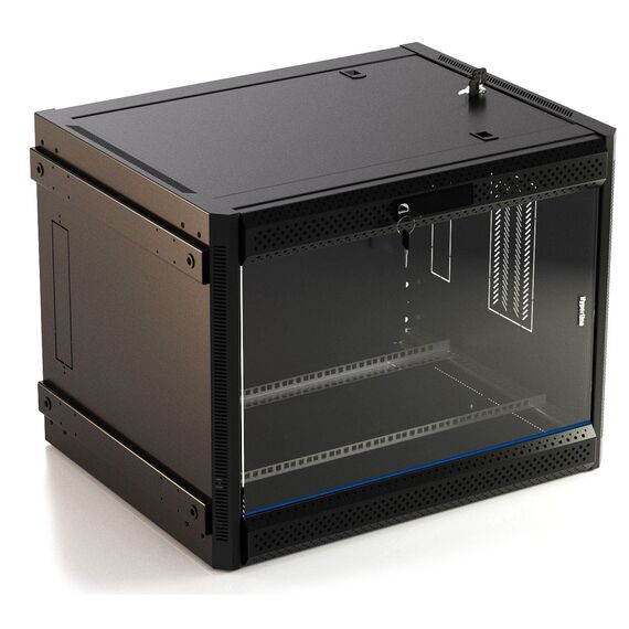 Шкаф коммутационный Hyperline TWB-FC-1266-GP-RAL9004 настенный 12U 600x600мм пер.дв.стекл 60кг черный 662мм IP20 сталь