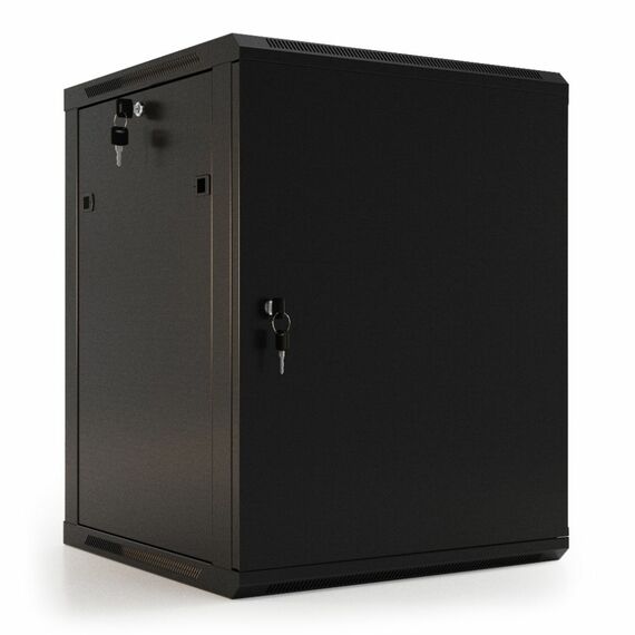 Шкаф настенный Hyperline WR-TW-1245-SR-RAL9004 19", 12U, 650x600х450 мм, цельнометаллическая дверь с замком, цвет черный (RAL9004) (разобранный)