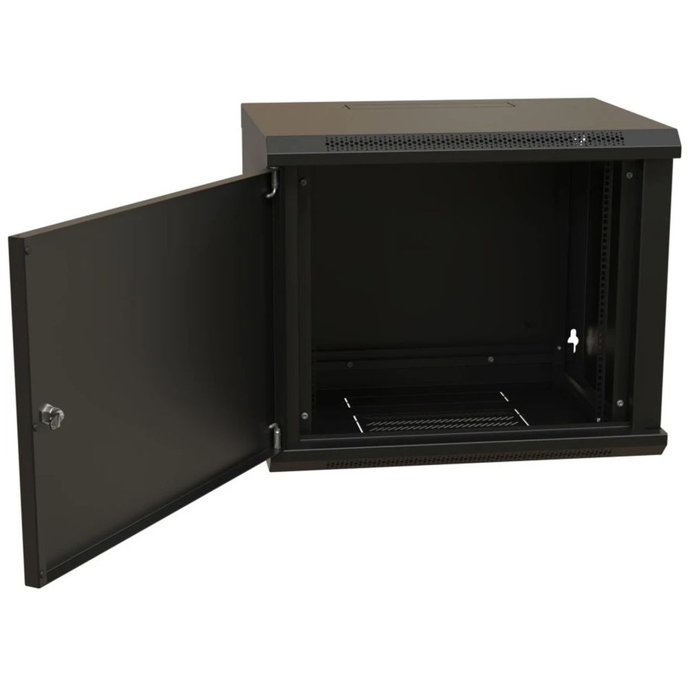 Шкаф настенный Hyperline WR-TW-1545-SR-RAL9004 19", 15U, 775x600х450мм, цельнометаллическая дверь с замком, цвет черный (RAL9004) (разобранный)