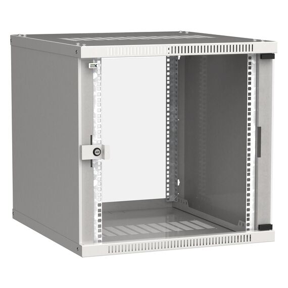 Шкаф коммутационный ITK LWE3-12U66-GF Linea WE настенный 12U 600x600мм пер.дв.стекл направл.под закл.гайки 50кг серый 550мм 200град. 585мм IP20 сталь