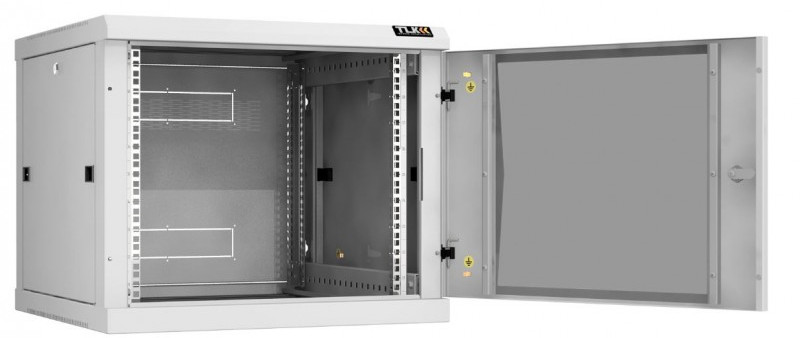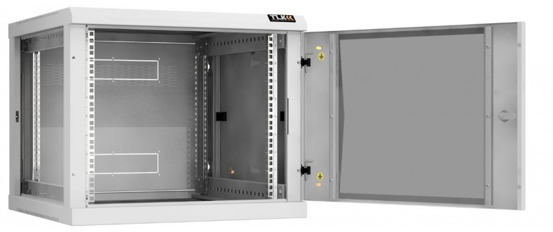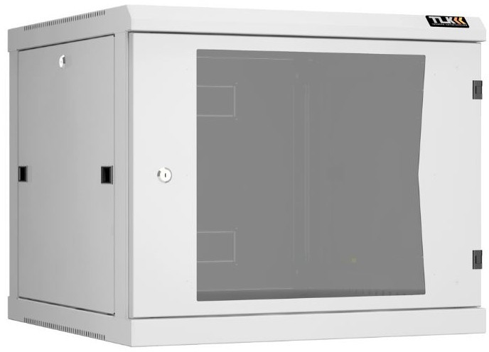 Настенный разборный шкаф TLK TWC-096060-R-G-GY 19", 9U, стеклянная дверь, Ш600хВ503хГ600мм, 2 пары монтажных направляющих, серый