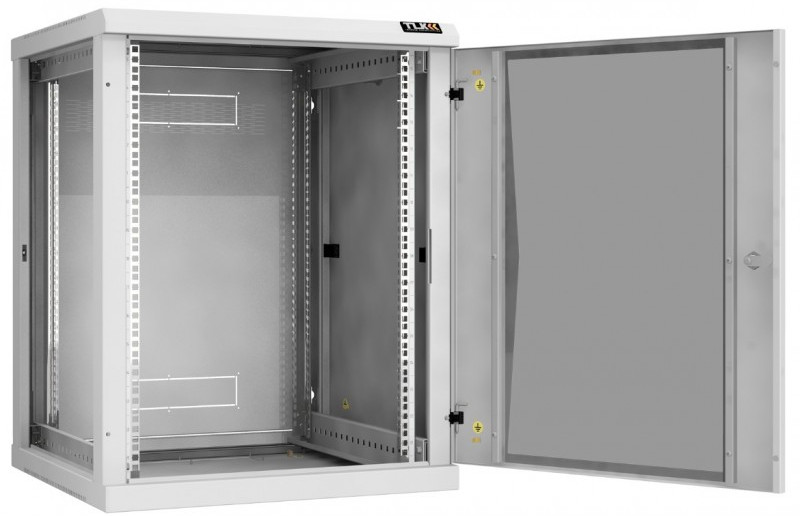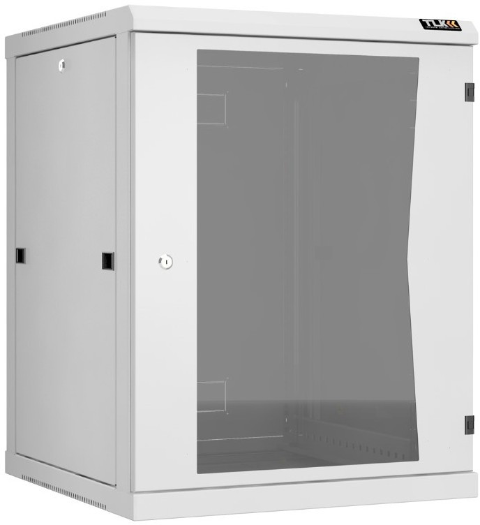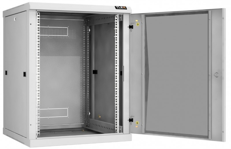 Настенный разборный шкаф TLK TWC-156060-R-G-GY 19", 15U, стеклянная дверь, Ш600хВ770хГ600мм, 2 пары монтажных направляющих, серый
