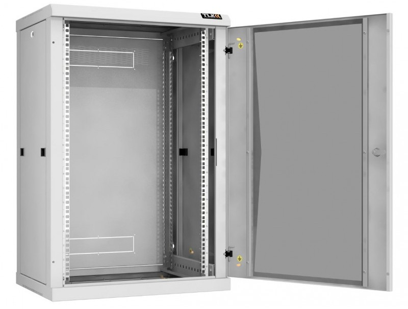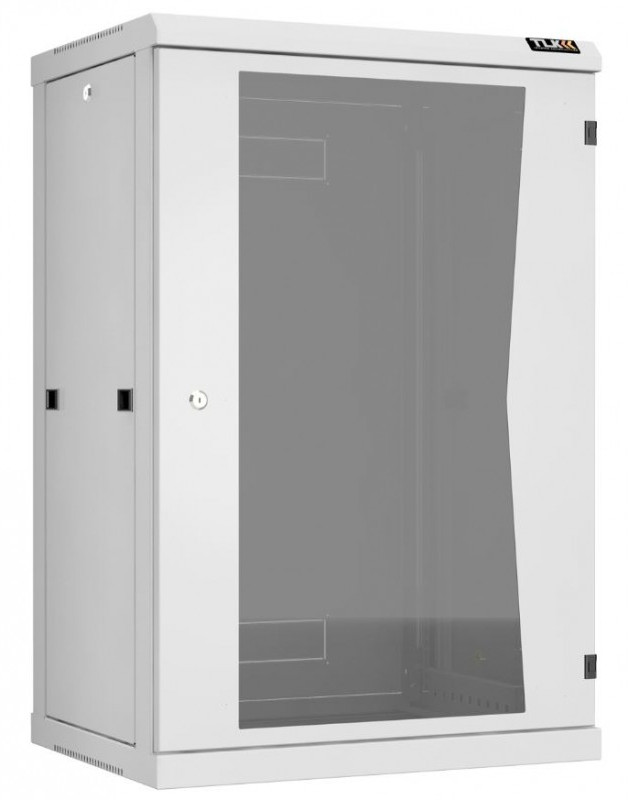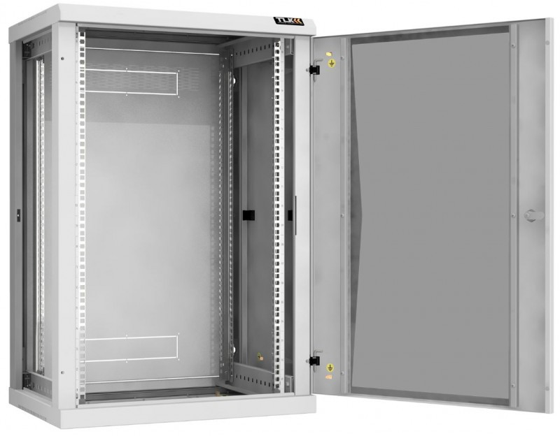 Настенный разборный шкаф TLK TWC-186045-R-G-GY 19", 18U, стеклянная дверь, Ш600хВ904хГ450мм, 2 пары монтажных направляющих, серый