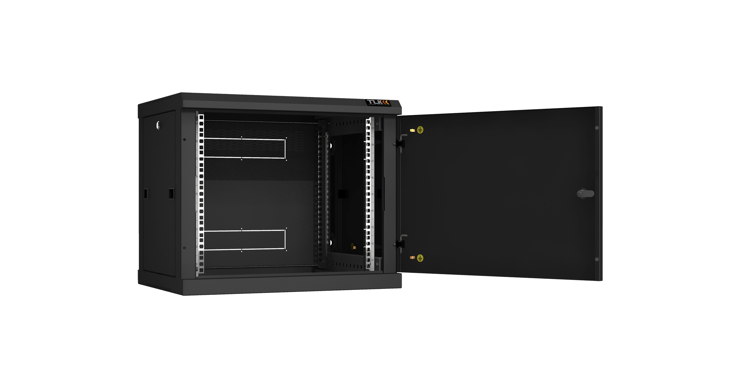 Настенный разборный шкаф TLK TWC-096045-R-M-BK 19", 9U, металлическая дверь, Ш600хВ503хГ450мм, 2 пары монтажных направляющих, черный