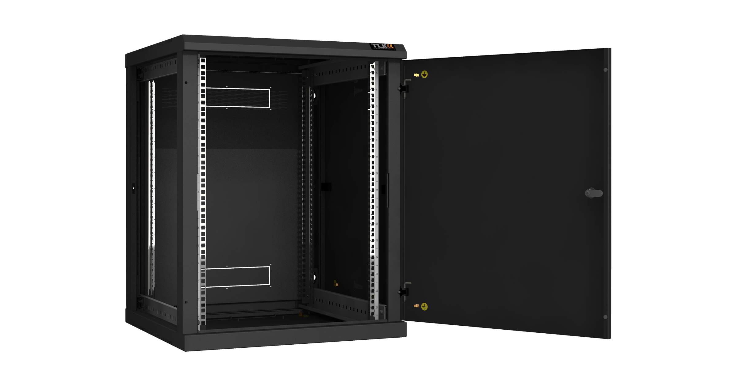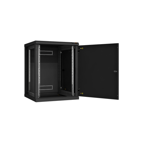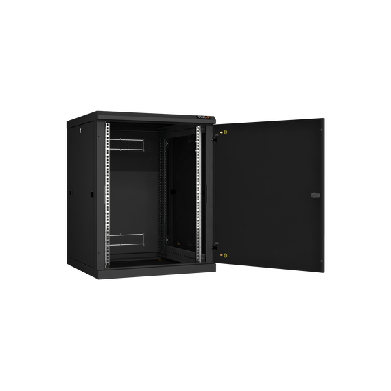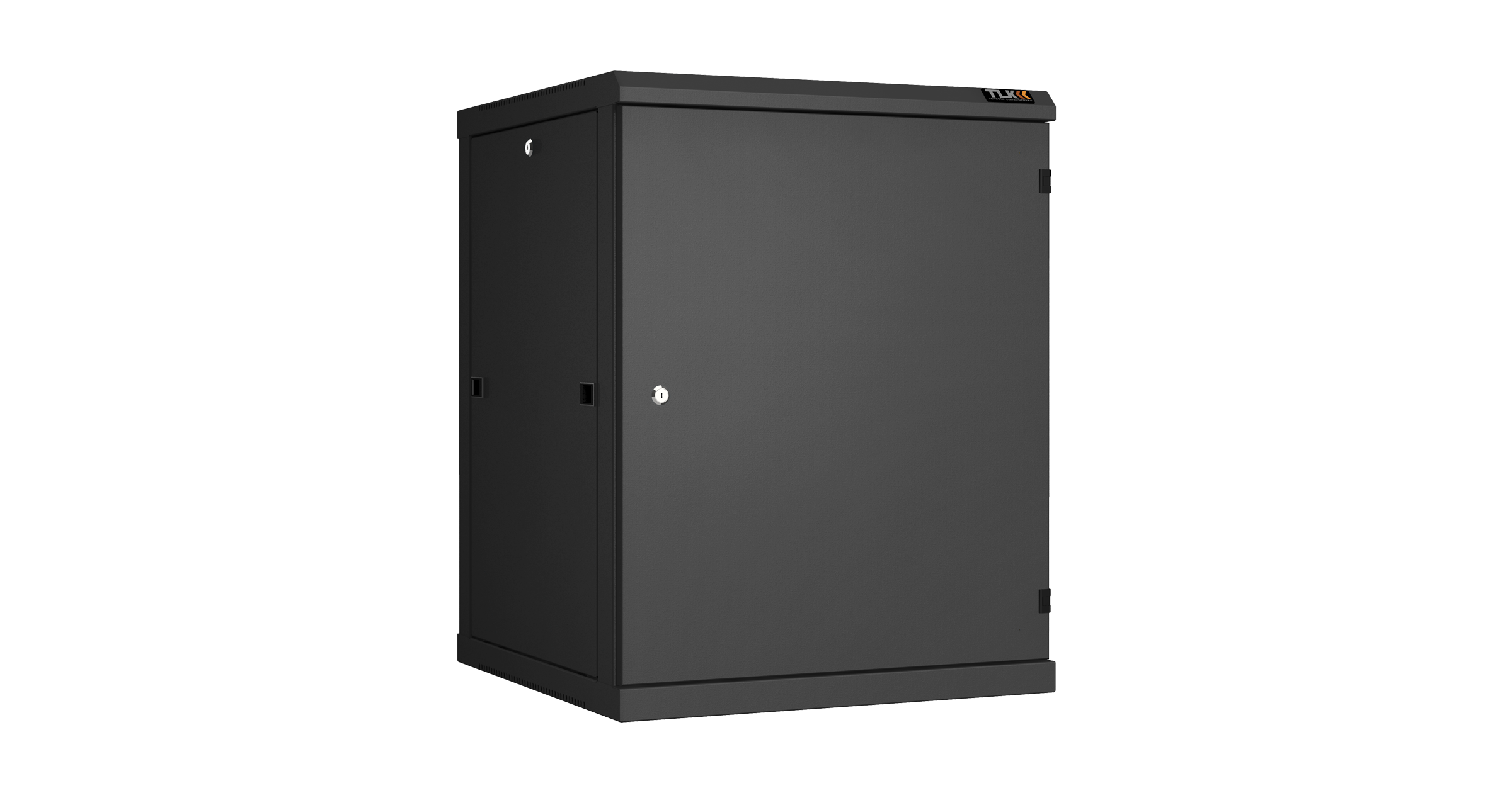 Настенный разборный шкаф TLK TWC-156060-R-M-BK 19", 15U, металлическая дверь, Ш600хВ770хГ600мм, 2 пары монтажных направляющих, черный