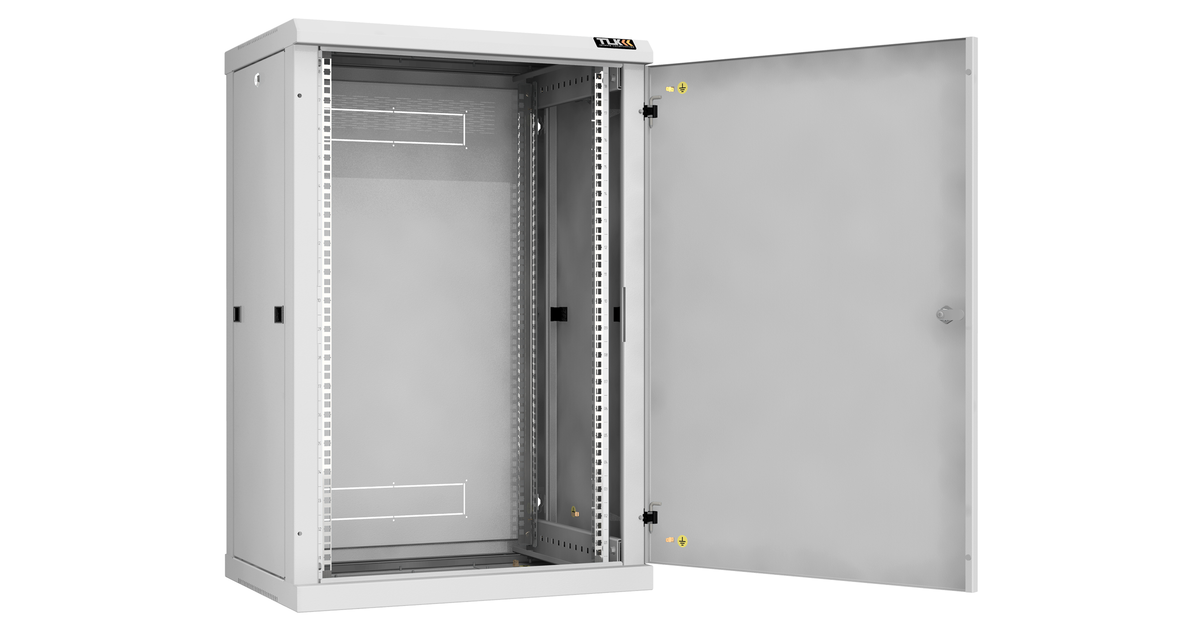 Настенный разборный шкаф TLK TWC-186045-R-M-GY 19", 18U, металлическая дверь, Ш600хВ904хГ450мм, 2 пары монтажных направляющих, серый