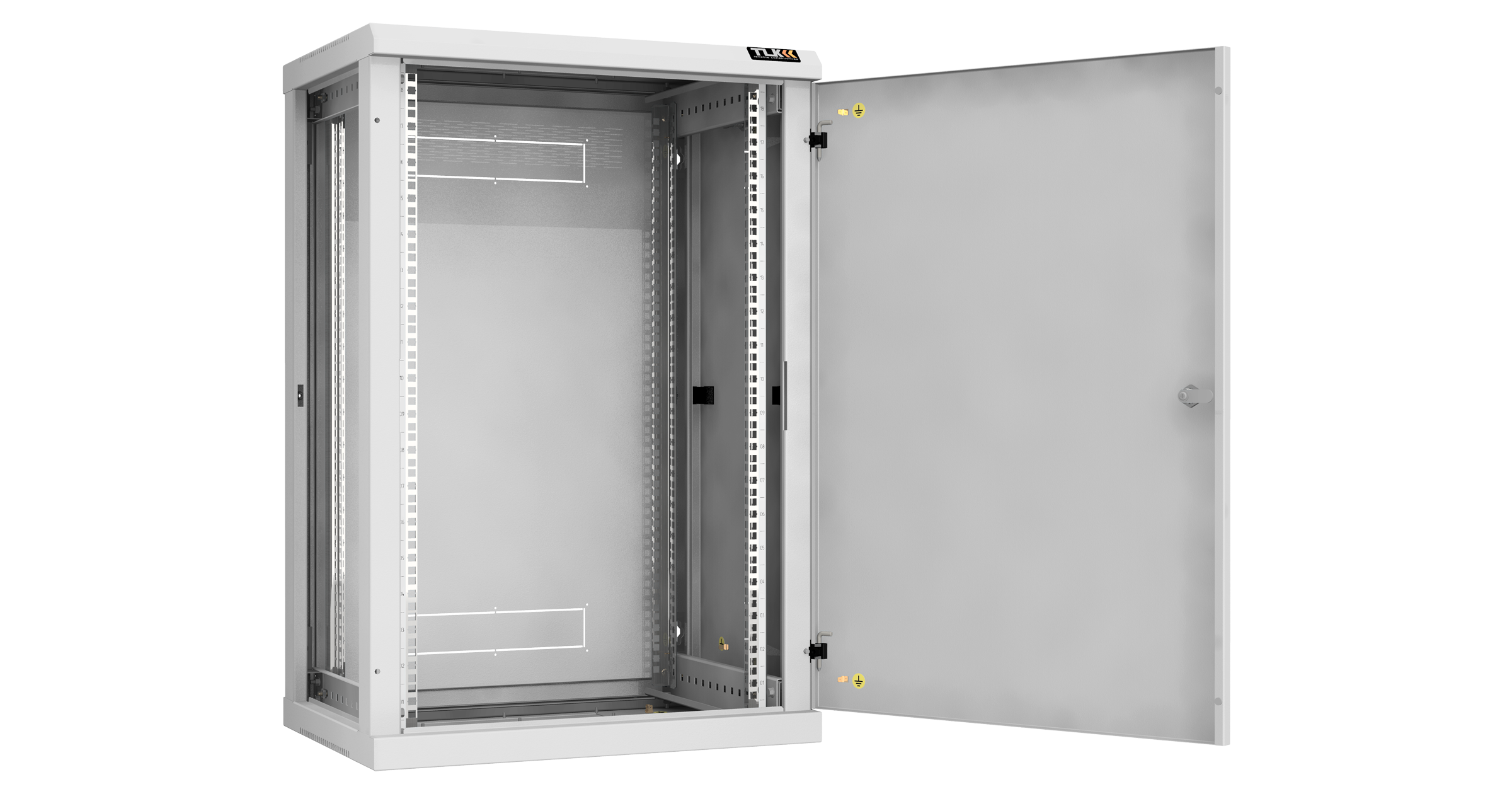 Особенностью настенных шкафов серии TWC-R является сборно-разборная конструкция. Удобство сборки обеспечивается предустановленными комплектующими и фурнитуры. Дверь шкафа может быть цельнометаллическая, либо со вставкой из ударопрочного тонированного в массе стекла. Имеется возможность навесить дверь с правой либо с левой стороны. Дверь с углом открытия более 180 градусов и съемные боковые стенки, предоставляют удобный доступ в шкаф с трех сторон для установки и обслуживания оборудования. Фиксация двери и боковых стенок осуществляется точечными замками, при этом боковые стенки дополнительно оборудованы защелками быстрой фиксации. Задняя стенка спроектирована для двусторонней установки с выламываемыми заглушками кабельных вводов 270х56 мм. Для установки оборудования в шкафу предусмотрены две пары направляющих 19" с возможностью регулировки по глубине.