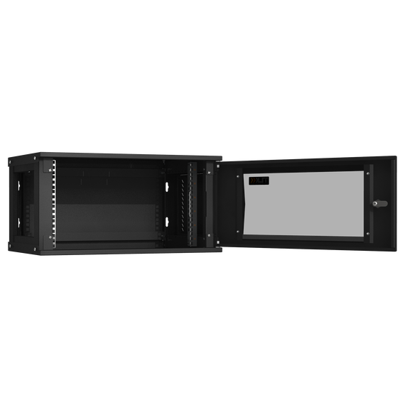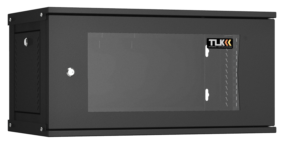 Настенный разборный шкаф TLK TWI-066035-R-G-BK 19", 6U, стеклянная дверь, Ш600хВ303хГ350мм, 1 пара монтажных направляющих, черный