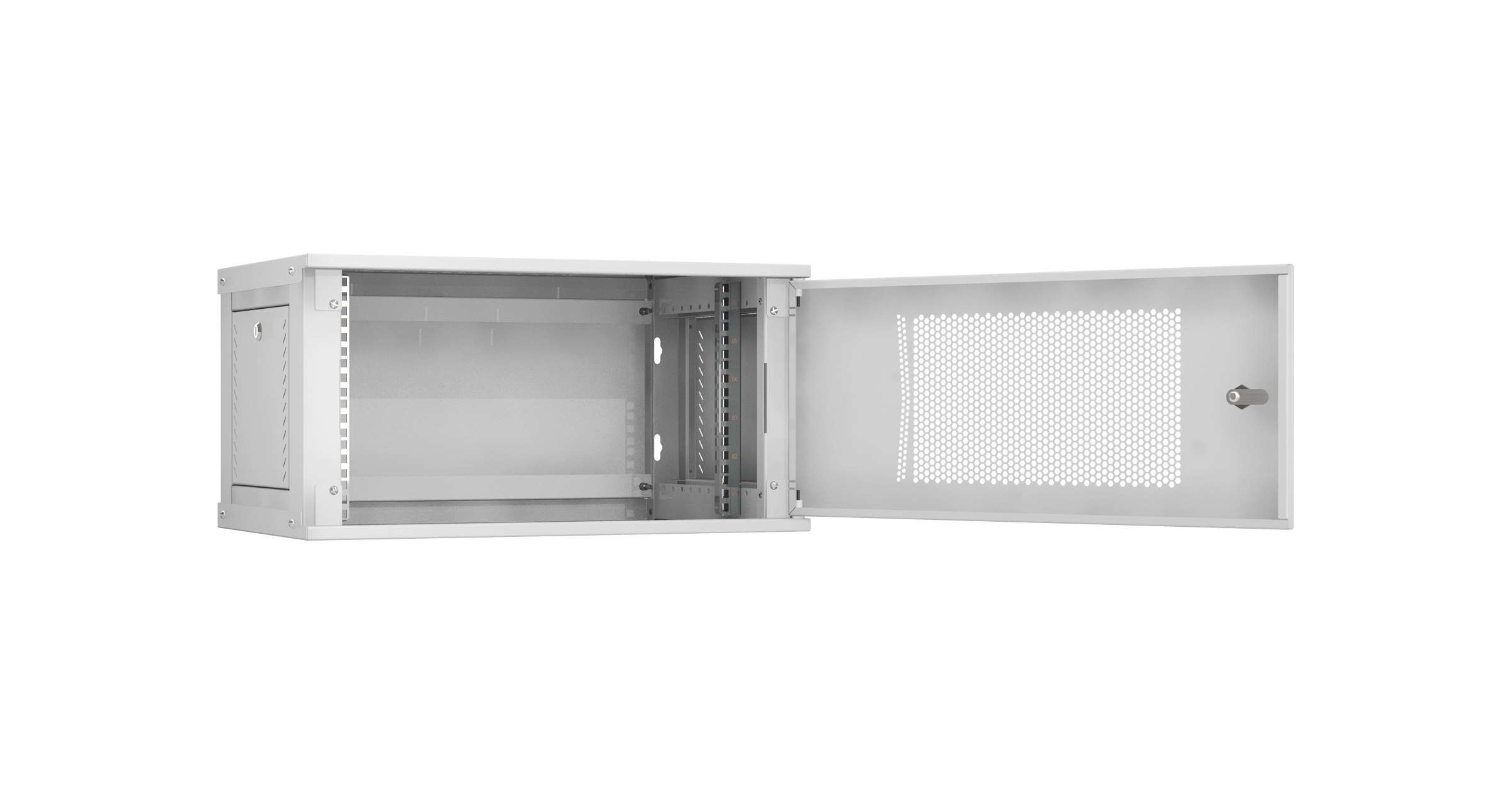 Настенный разборный шкаф TLK TWI-066035-R-P-GY 19", 6U, перфорированная дверь, Ш600хВ303хГ350мм, 1 пара монтажных направляющих, серый