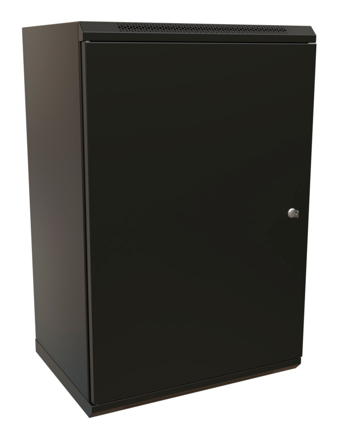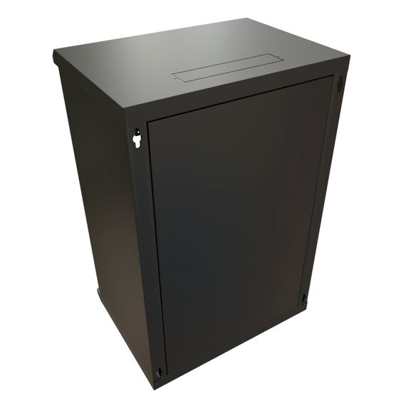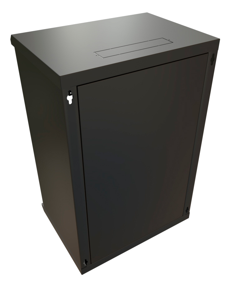 Шкаф коммутационный WRLINE WR-TW-1845-SR-RAL9004 настенный 18U 600x450мм пер.дв.металл 2 бок.пан. направл.под винты 60кг черный 370мм 908мм IP20 сталь