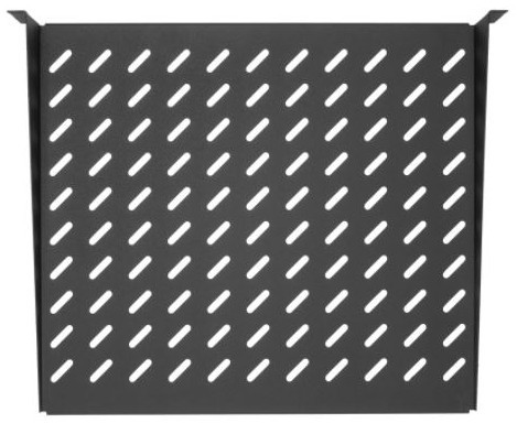 Фронтальная полка предназначена для размещения нестандартного легкого оборудования, инструментов или документации в телекоммуникационных шкафах и стойках. Поверхность полки имеет перфорацию для лучшей вентиляции оборудования. Крепление осуществляется на одной паре 19" направляющих в четырех точках за фронтальную часть полки. Полка устанавливается в напольные шкафы и стойки, настенные шкафы в соответствии с таблицей совместимости аксессуаров.