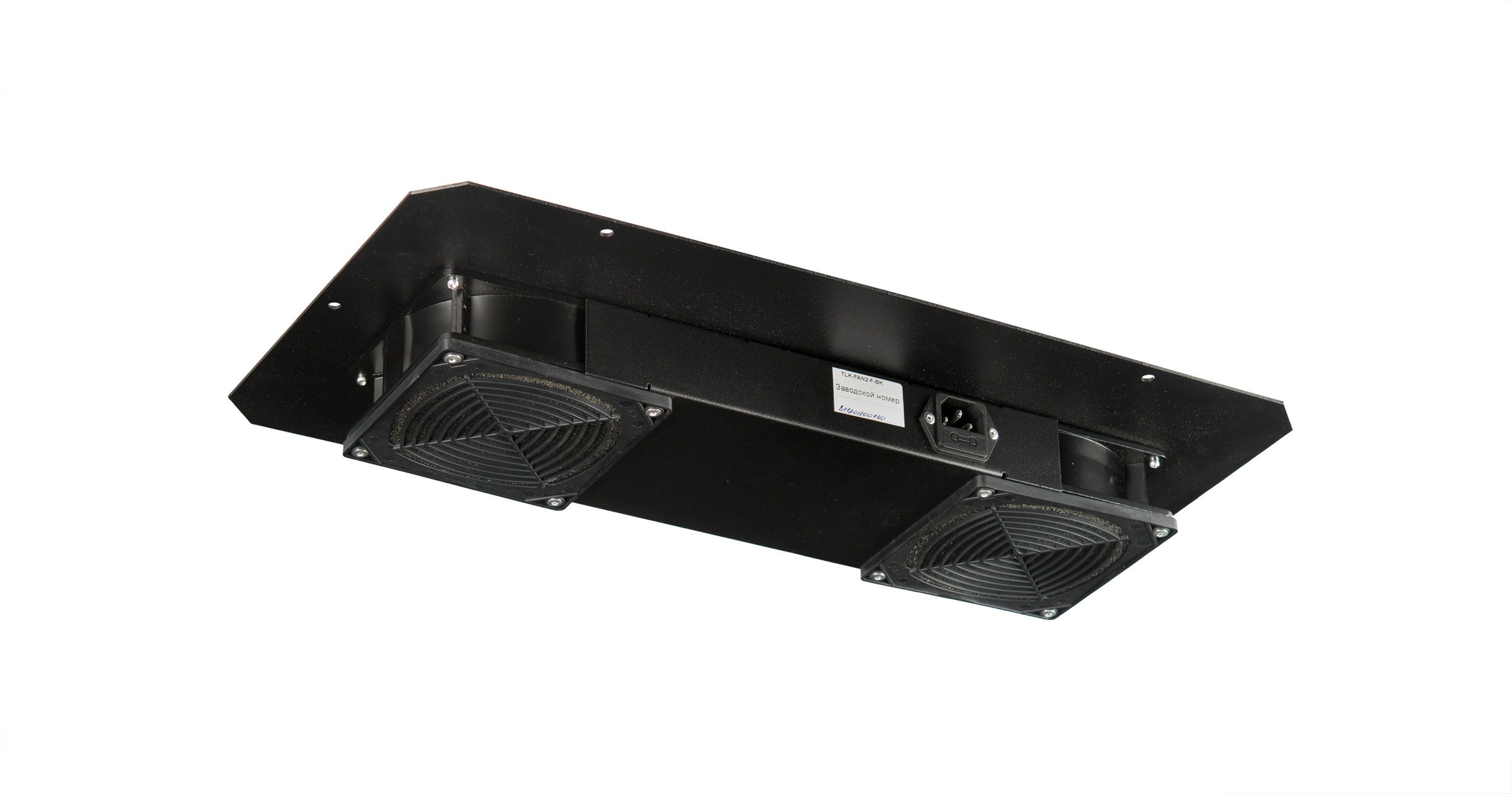 Вентиляторный блок TLK TLK-FAN2-F-BK для настенных шкафов серии TWM, TWC-R, для напольных шкафов серии TFR-R глубиной 600 мм, 2 вентилятора, нижние решётки пластиковые с фильтром, без шнура питания, черный