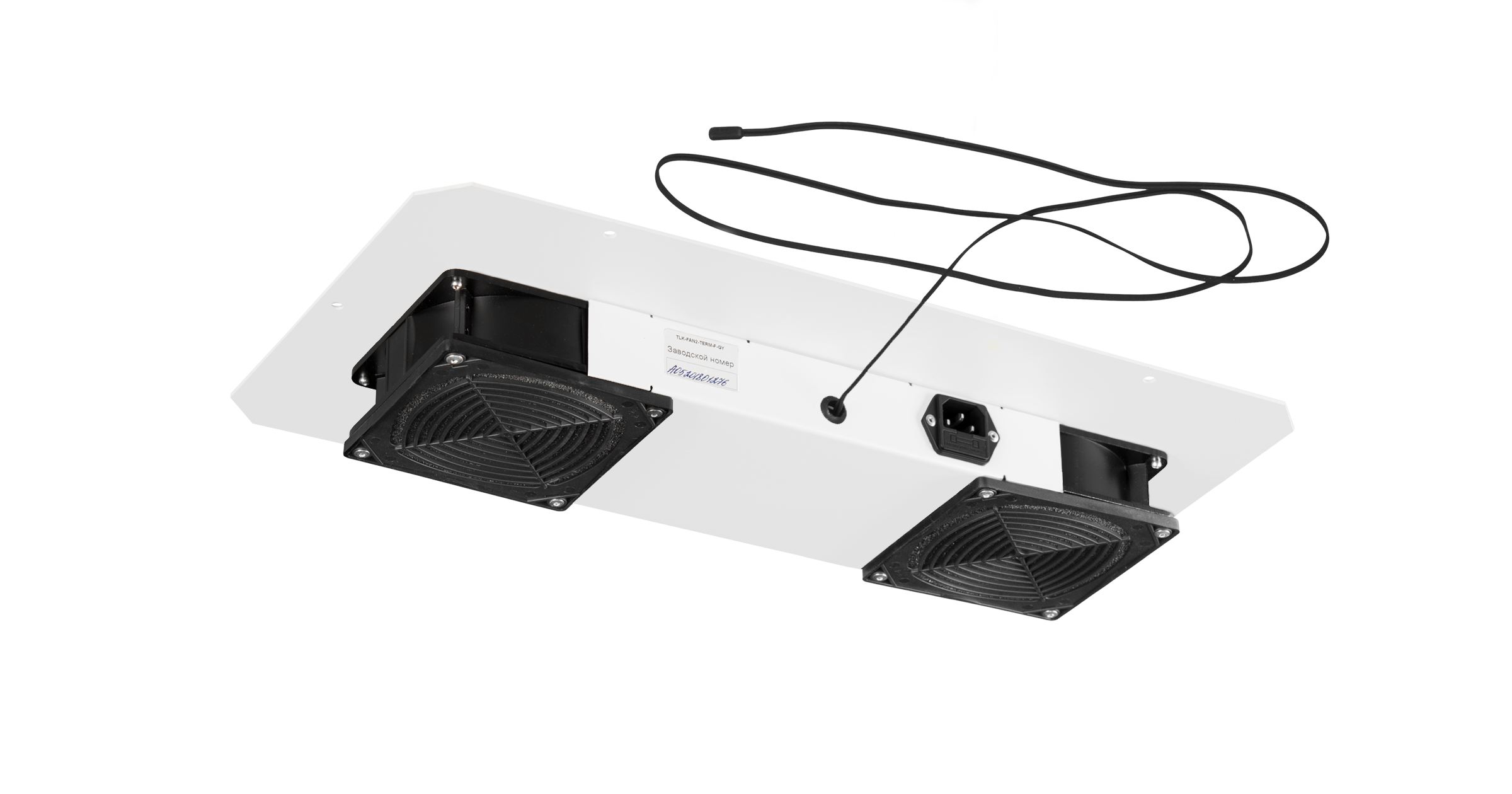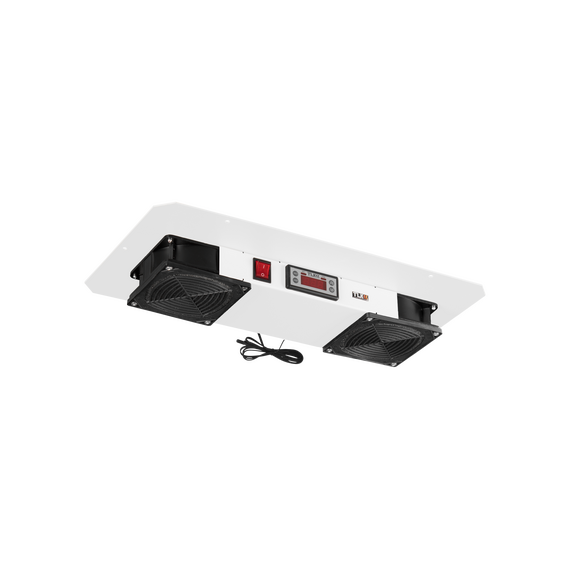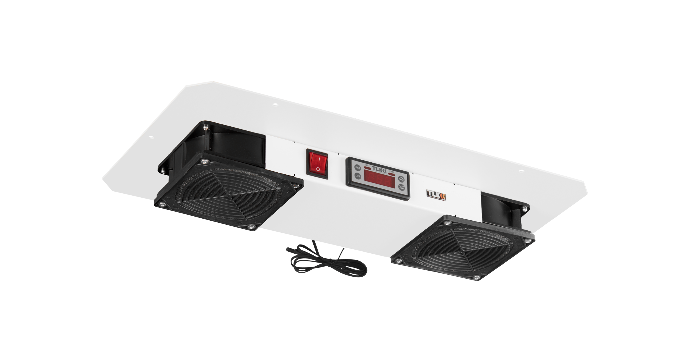 Вентиляторный блок TLK TLK-FAN2-TERM-F-GY для настенных шкафов серии TWM, TWC-R, для напольных шкафов серии TFR-R глубиной 600 мм, 2 вентилятора с фильтрующими элементами, терморегулятором и датчиком, без шнура питания, серый