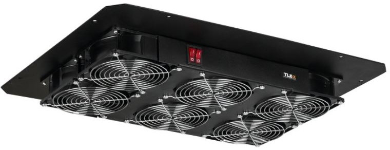 Вентиляторный блок предназначен для принудительного охлаждения активного оборудования, установленного в телекоммуникационном шкафу, путем отвода теплых воздушных масс из внутреннего объем шкафа. Блок устанавливается в специальные ниши на крыше или в основании напольных шкафов TLK и совместимы с сериями TFE, TFL, TFR, TFA. При этом шкафы глубиной (600 мм) предусматривают только верхнее размещение вентиляторного блока. Для более подробной информации сверьтесь с таблицей в разделе "Описание" к шкафу. Питание вентиляторного блока на 6 вентиляторов осуществляется с помощью подключения шнура питания к сети с напряжением 220 В, 50 Гц. Разъем питания на вентиляторном блоке типа IEC-60320 C14. Вентиляторы закрыты решетками с обеих сторон. Вентиляторный блок конструктивно выполнен с монтажным фланцем для удобства установки. Несущая конструкция вентиляторного блока выполнена из 2 мм стали. Антикоррозионное и декоративное покрытие выполнено ударопрочной порошковой краской черного цвета.