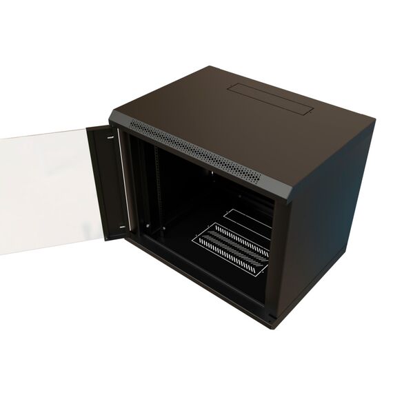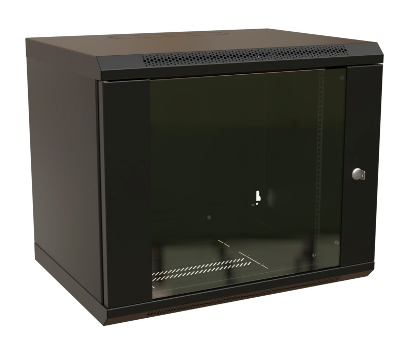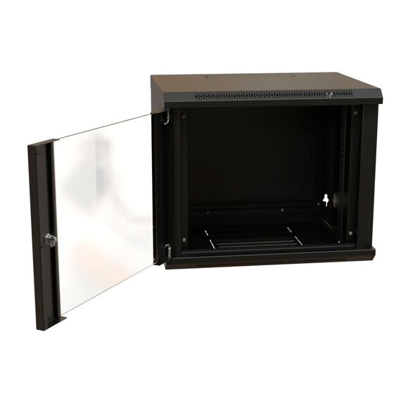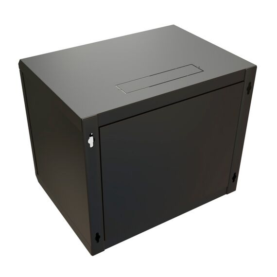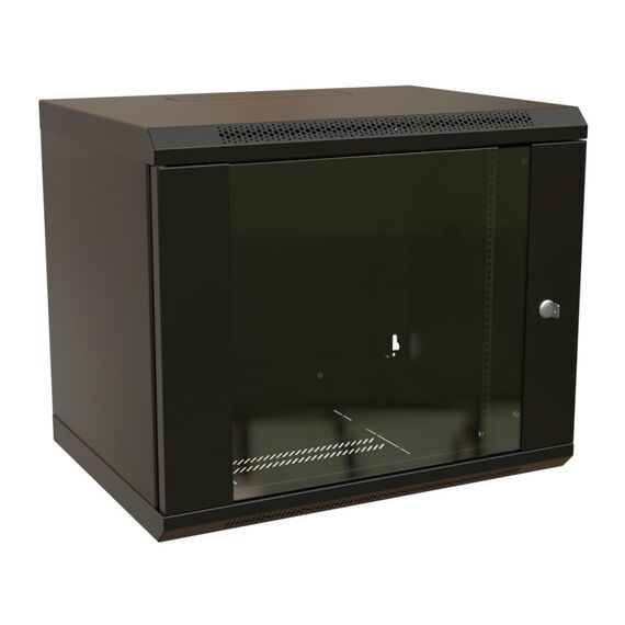 Шкаф коммутационный настенный WRLINE WR-TW-1266-GP-RAL9004 12U 600x600мм пер.дв.стекл 2 бок.пан. направл.под винты 60кг черный 500мм 650мм IP20 сталь