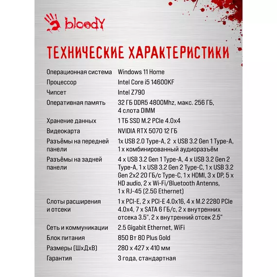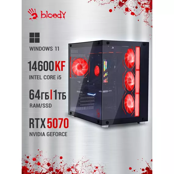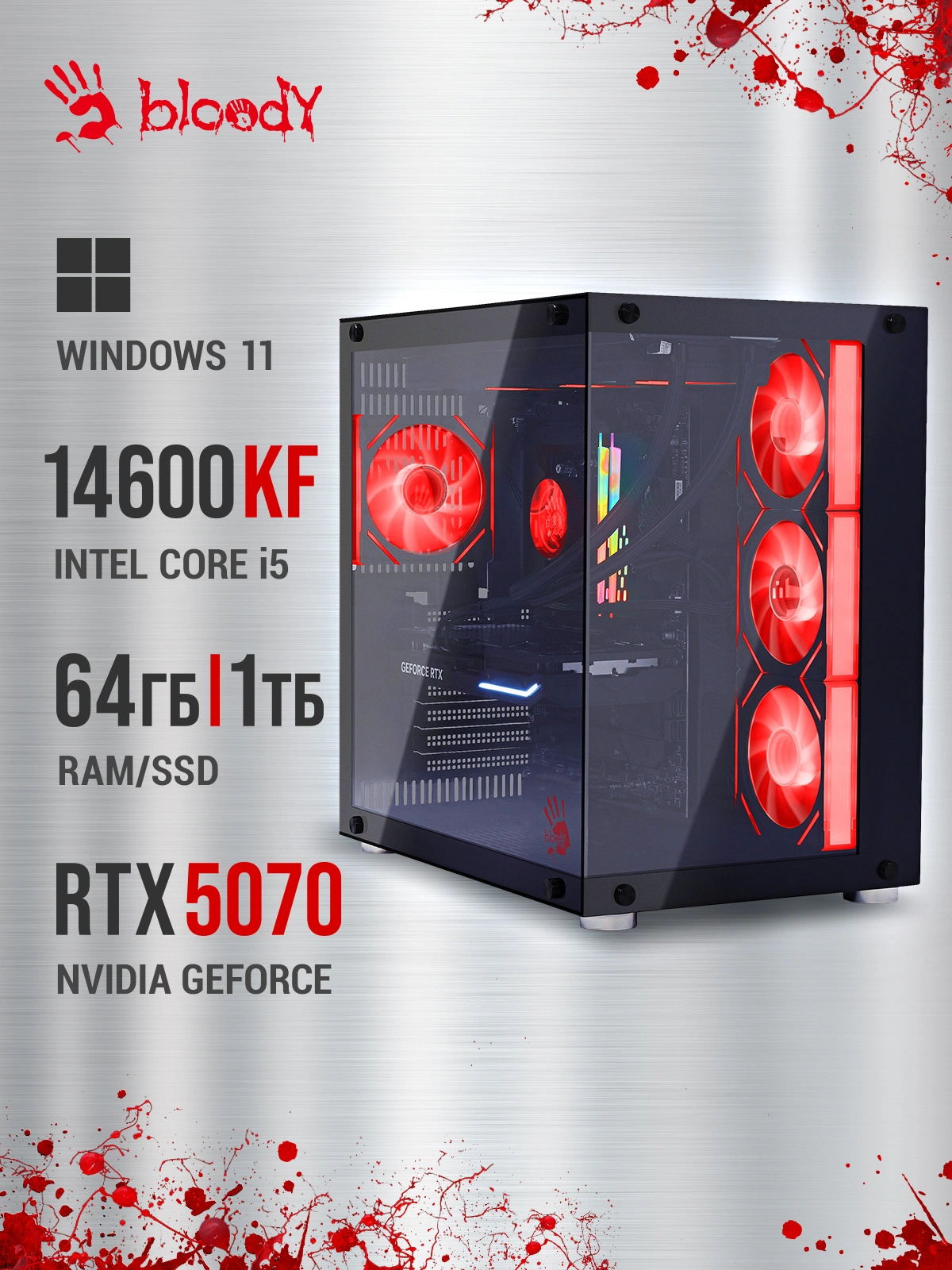 ПК Bloody BD-PC CZ79C3 MT i5 14600KF (3.5) 32Gb SSD1Tb RTX5070 12Gb Windows 11 Home 64 2.5xGbitEth WiFi BT 850W черный (RUS) [2129071]