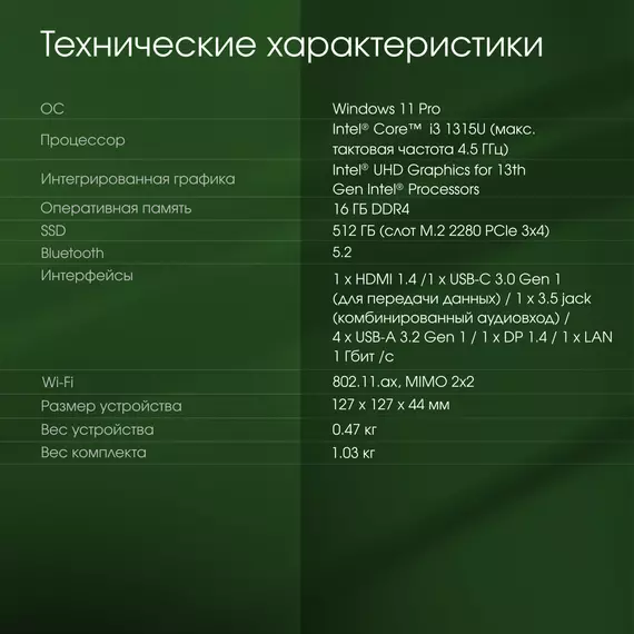 | Процессор | Intel Core i3 1315U 1.2ГГц |