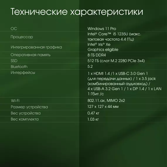 | Процессор | Intel Core i5 1235U 1.3ГГц |