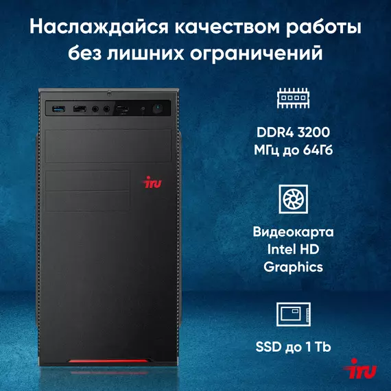 ПК iRU Home 310H6SE MT i3 13100 (3.4) 8Gb SSD256Gb UHDG 730 Free DOS GbitEth 400W черный [2032024]