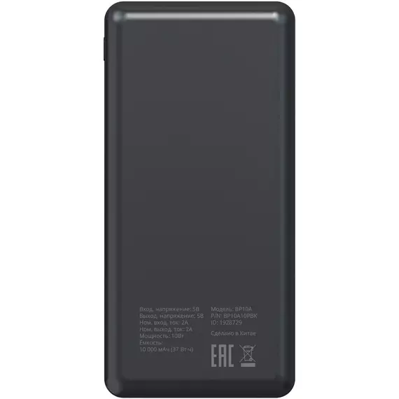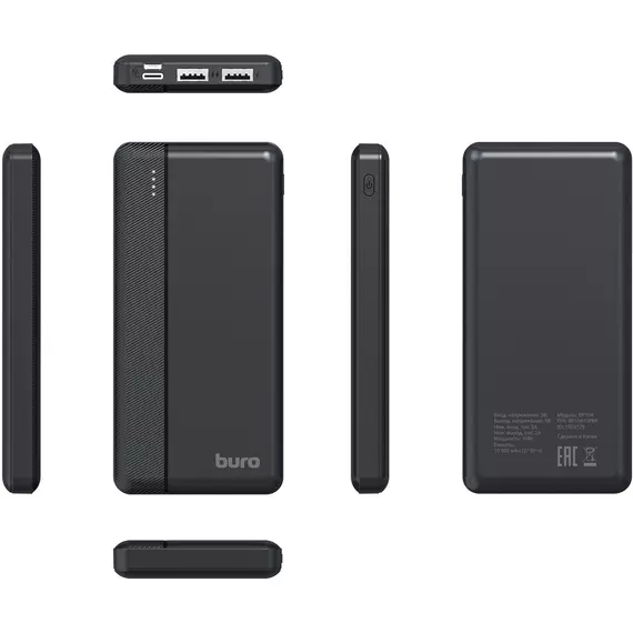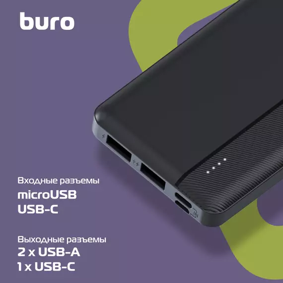 Мобильный аккумулятор BURO BP10A 10000mAh 10W 2A 2xUSB-A/USB-C черный [BP10A10PBK]