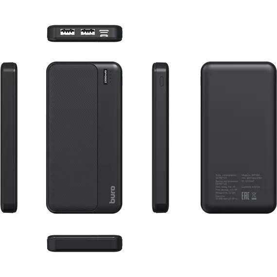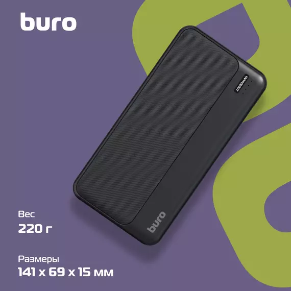 Мобильный аккумулятор BURO BPF10A 10000mAh QC3.0/PD3.0 22.5W 3A 2xUSB-A/USB-C черный [BPF10A22PBK]