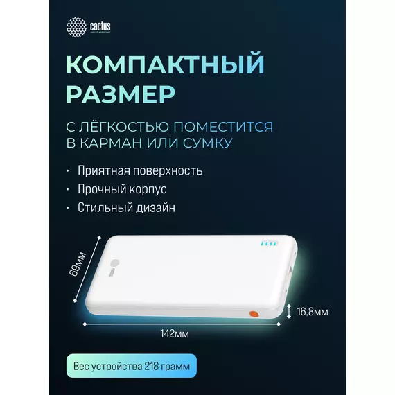 Мобильный аккумулятор Cactus CS-PBFSBA-10000 10000mAh 22.5W 4.5A USB-A/2xUSB-C белый