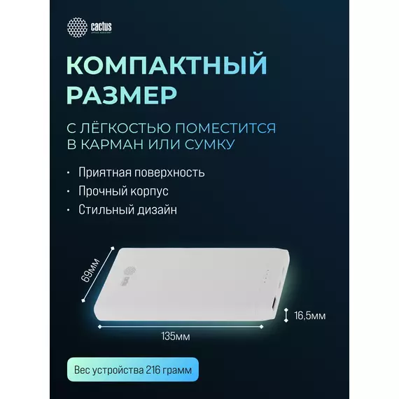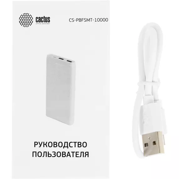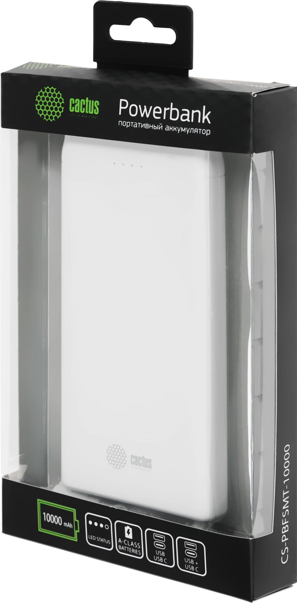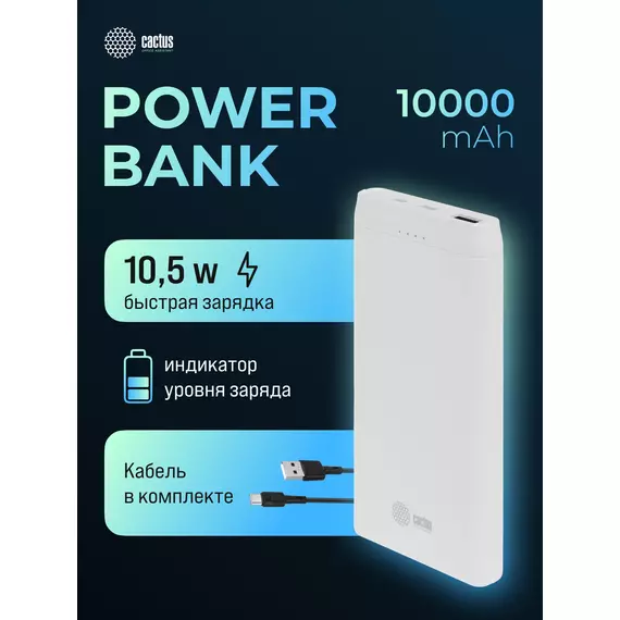 Мобильный аккумулятор Cactus CS-PBFSMT-10000 10000mAh 10.5W 2.1A 2xUSB-A белый