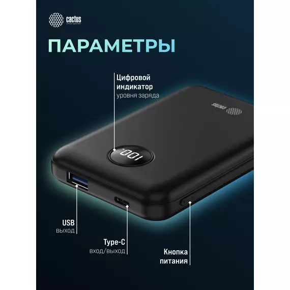 Мобильный аккумулятор Cactus CS-PBFSOA-10000 10000mAh 22.5W 4.5A USB-A/USB-C черный