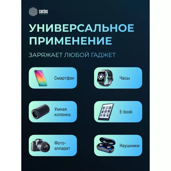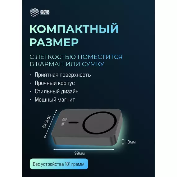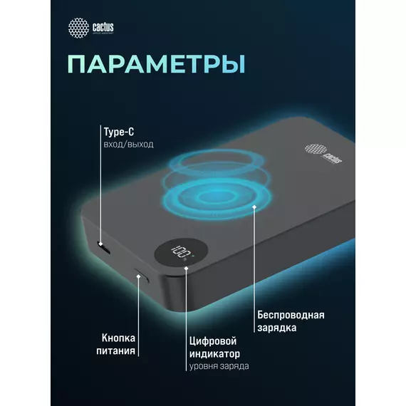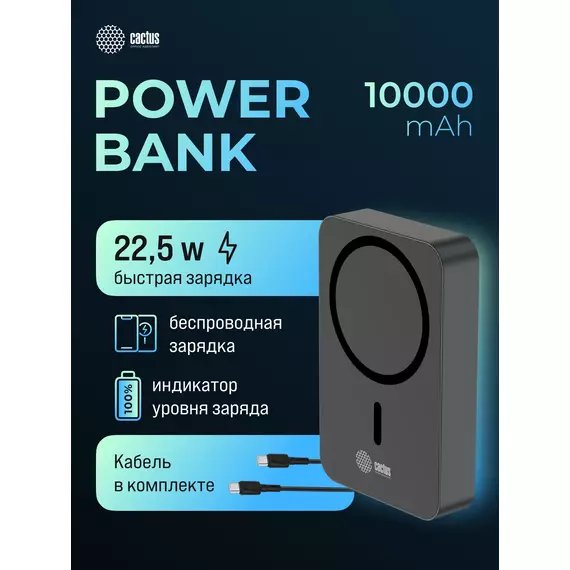 Мобильный аккумулятор Cactus CS-PBFSTA-10000 10000mAh 22.5W 4.5A USB-C беспров.зар. серый