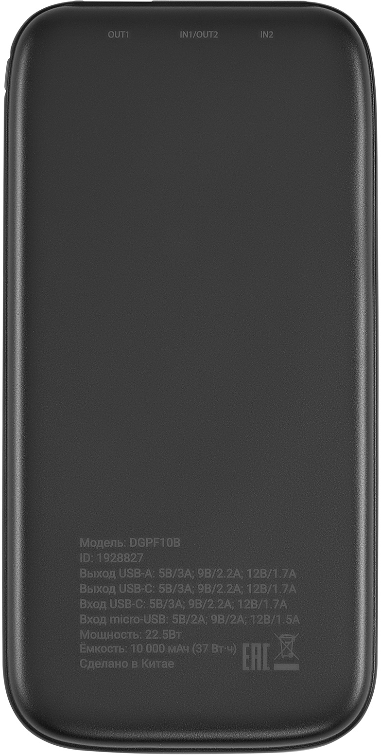 Мобильный аккумулятор Digma DGPF10B 10000mAh QC3.0/PD3.0 22.5W 3A USB-A/USB-C черный [DGPF10B22PBK]