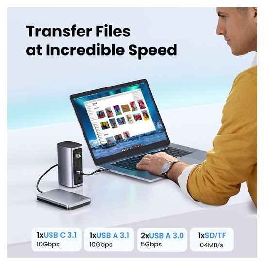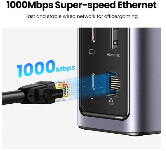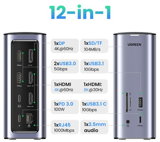 Док-станция UGREEN CM555 USB-C Multifunction Docking Station Pro, цвет серый [90325]