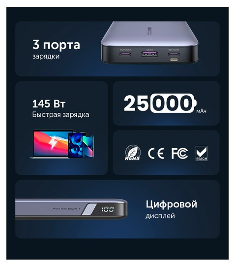 Внешний аккумулятор UGREEN PB205 Abyss Blue PD 145W Power Bank 25000mAh, цвет темно-синий [90597A]