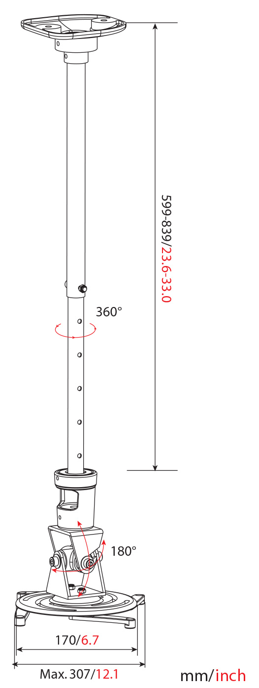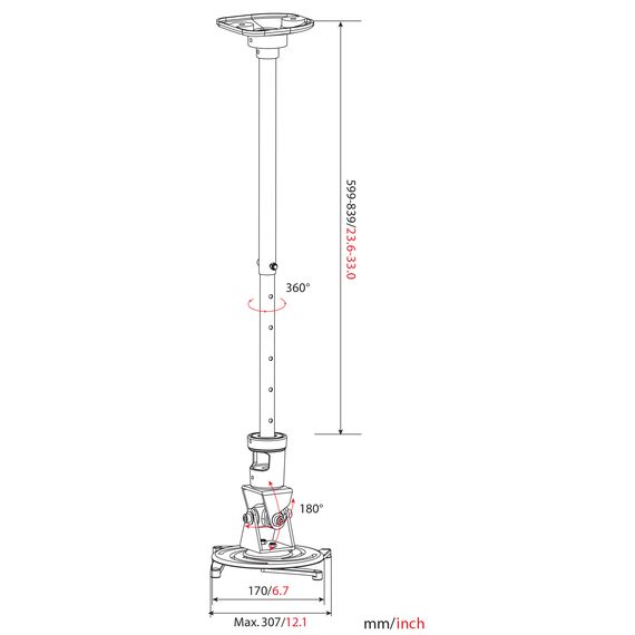 Кронштейн для проектора Cactus CS-VM-PR01L-BK черный, макс.10кг, потолочный поворот и наклон