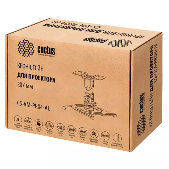 Кронштейн для проектора Cactus CS-VM-PR04-AL серебристый макс.22кг потолочный поворот и наклон
