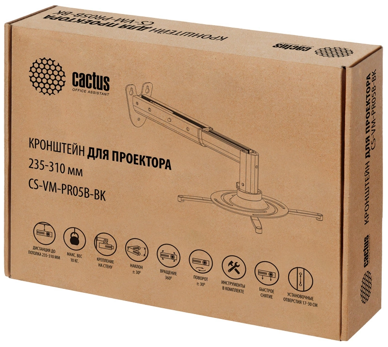 Кронштейн для проектора Cactus CS-VM-PR05B-BK черный макс.10кг настенный поворот и наклон [CS-VM-PR05B-BK]