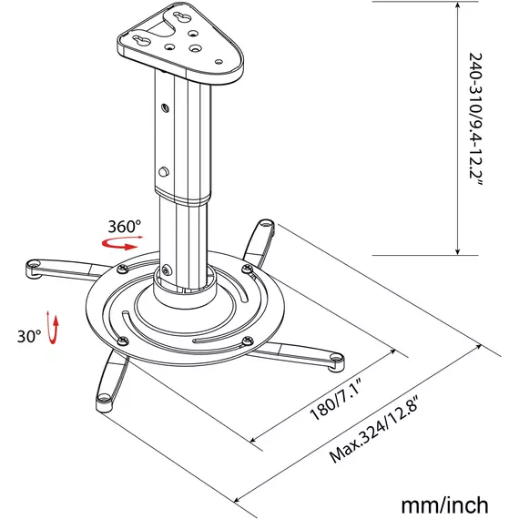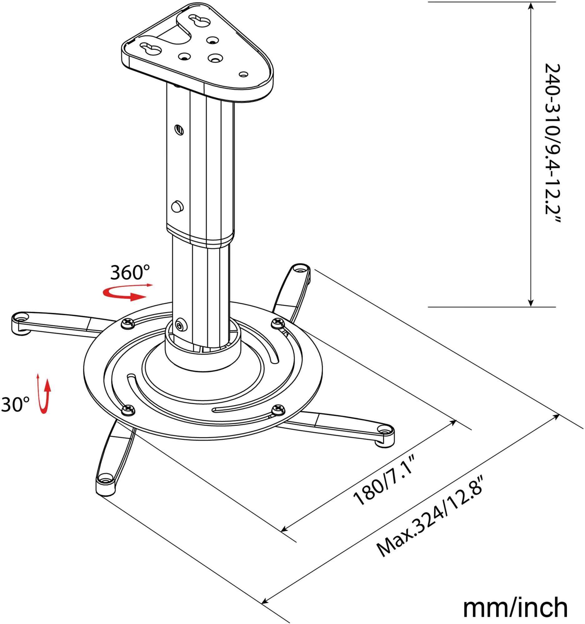 | Угол наклона | -30/+30 ° |