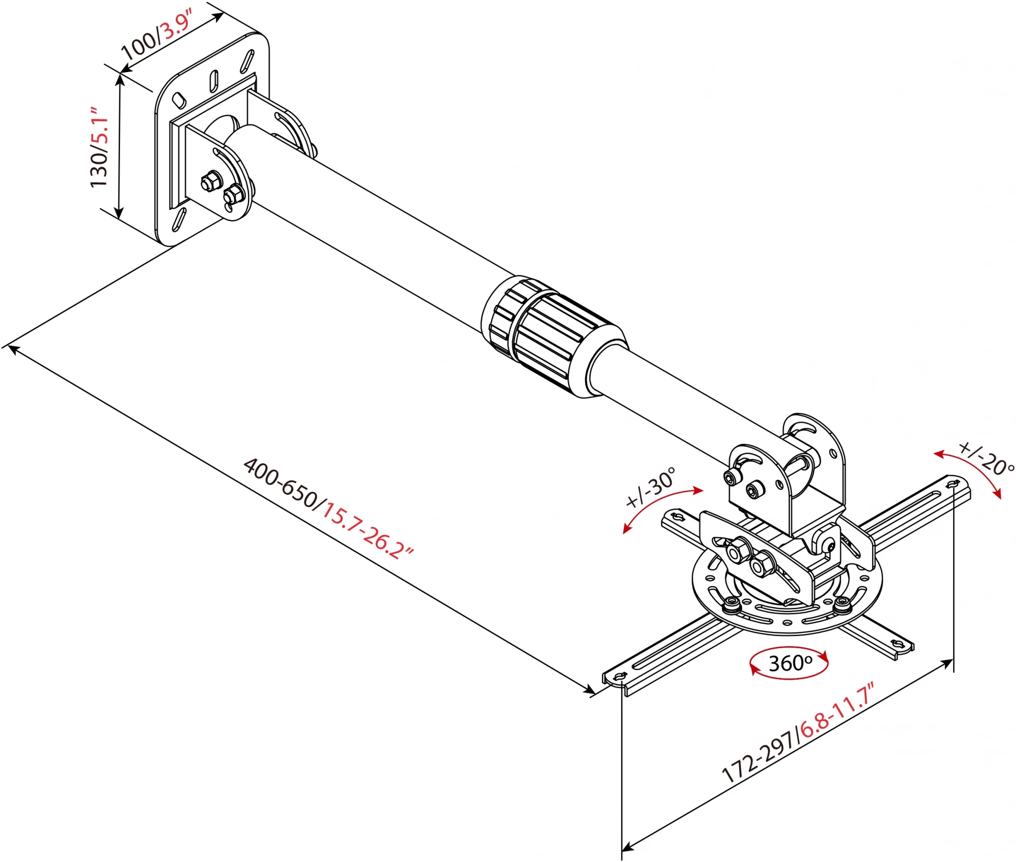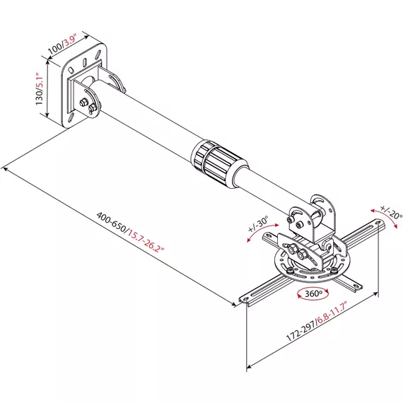 | Угол наклона | -30/+30 ° |