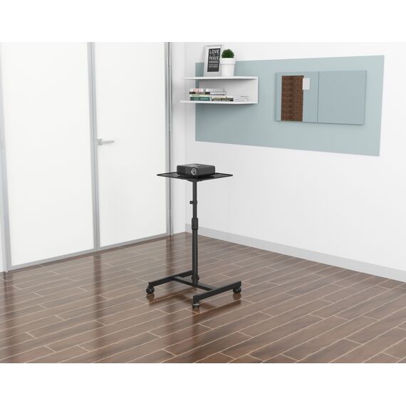 Столики для проекторов идеально подходят для разнообразных целей и могут использоваться в школьных классах, библиотеках и других помещениях, где требуется установка демонстрационного оборудования. Столик оснащен колесами с блокировкой, надежным и устойчивым основанием, что позволяет быстро и легко перемещать проектор. Мобильность столика помогает также облегчить фокусировку проектора, поскольку при необходимости всю конструкцию целиком можно перемещать поближе к экрану или от него. Стол оснащен держателем для прокладки проводов и эластичным ремнем для фиксации проектора.