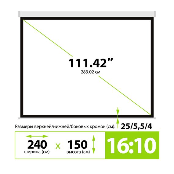 Моторизованный экран настенно-потолочный рулонны Cactus CS-PSSME-240X150-WT SIlverMotoExpert, 150x240см, 16:10, белый