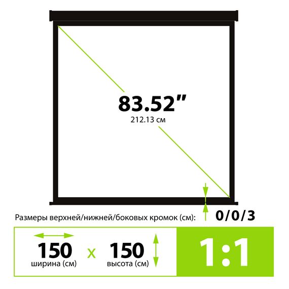 Экран Cactus CS-PSW-150X150-BK 150x150см Wallscreen 1:1 настенно-потолочный рулонный черный