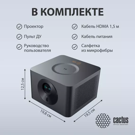 Проектор + Экран Cactus CS-M1.SG + CS-PSRM-180X180-BK DLP (1920x1080) 200000:1 ресурс лампы:20000часов 1xUSB typeA 1xHDMI 1.9кг RTL [CS-M1.SG_BUNDLE]