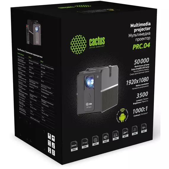 Проектор Cactus CS-PRC.04B.WUXGA-A LCD, 3500Lm, 1920x1080, 1000:1, 50000 часов, 1xUSB, 1xHDMI, 1.35кг
