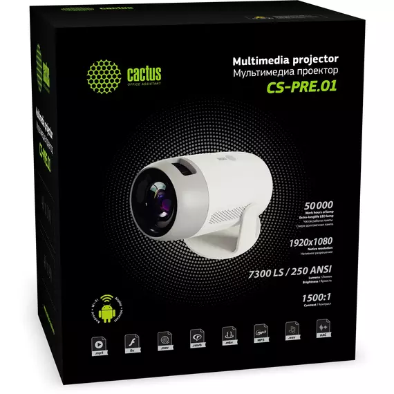 Проектор Cactus CS-PRE.01WT Full HD-A LCD 250Lm ANSI (1920x1080) 1500:1 ресурс лампы:50000 часов 1xUSB typeA 1xHDMI 1кг RTL [CS-PRE.01WT.WUXGA-A]