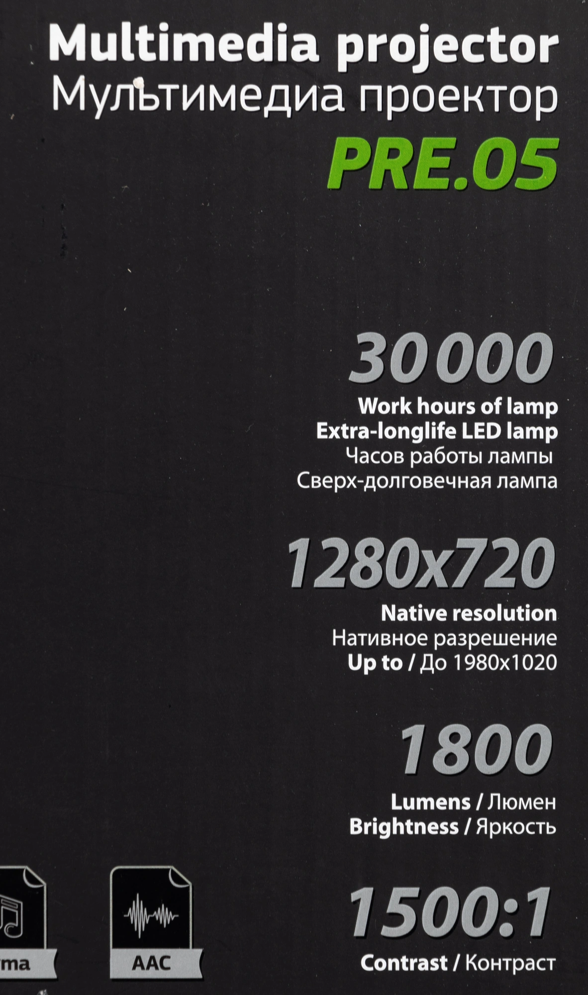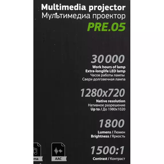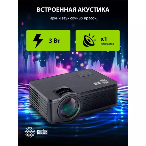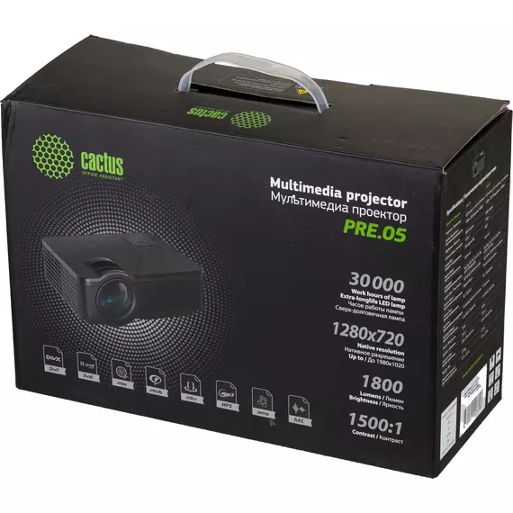 Проектор Cactus CS-PRE.05B.WXGA LCD 1800Lm LS 180Lm ANSI (1280x720) 1500:1 ресурс лампы:30000часов 1xUSB typeA 2xHDMI 1.75кг